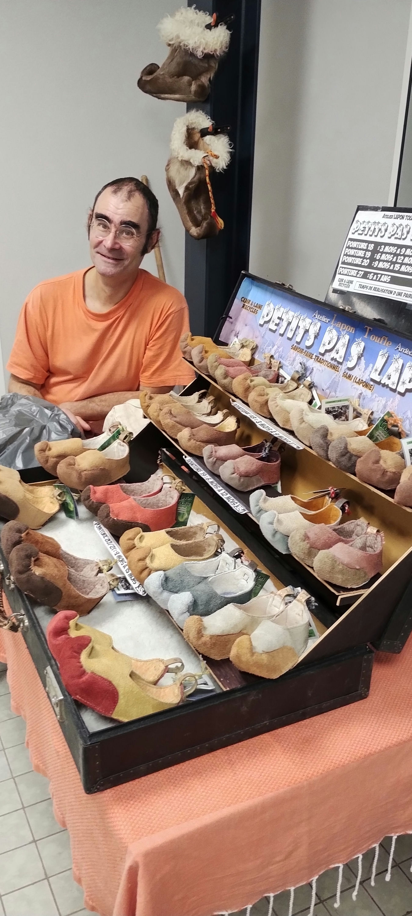 Et aujourd'hui ? Je suis parti vivre 6 mois en Laponie avec des éleveurs de rennes fin 2019. J'y ai appris à faire des chaussures en peaux de rennes. Rentré en France, je voulais continuer mais sans tuer d'animaux. Via des transporteurs dans les grandes villes, je récupère du cuir sur des canapés qui partent au rebut et je fabrique des chaussons. Les bennes sont tellement pleines, j'ai des kilos de cuir d'avance, ce qui va me permettre d'étendre ma gamme de produits. Pour l'intérieur des chaussons, j'utilise des couvertures en laine que je trouve en recyclerie. C'est en lien avec mon éthique de vie : j'essaie de consommer le moins possible et de manière réfléchie.